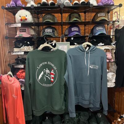 Bring a piece of the adventure home with you! Our merchandise collection features a variety of fun, stylish, and memorable items including youth and adult T‑shirts, hats, stickers, stuffed animals, and toys—perfect for sharing your love of horses, the Lowcountry, and your time at Lawton Stables.